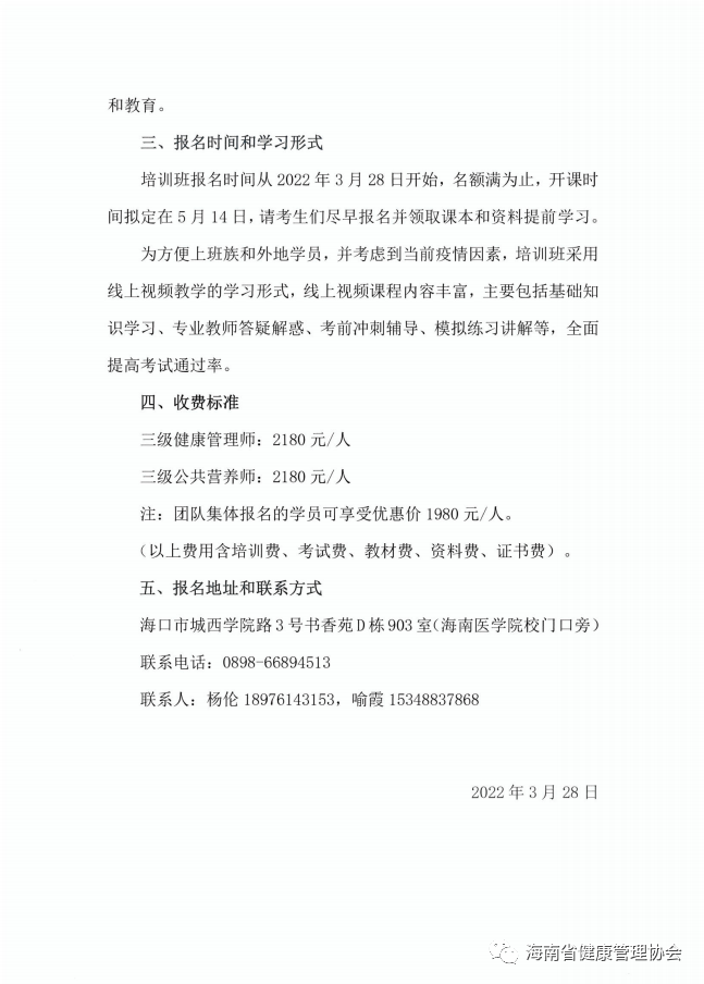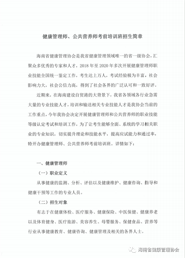健康管理师、公共营养师考前培训班招生简章